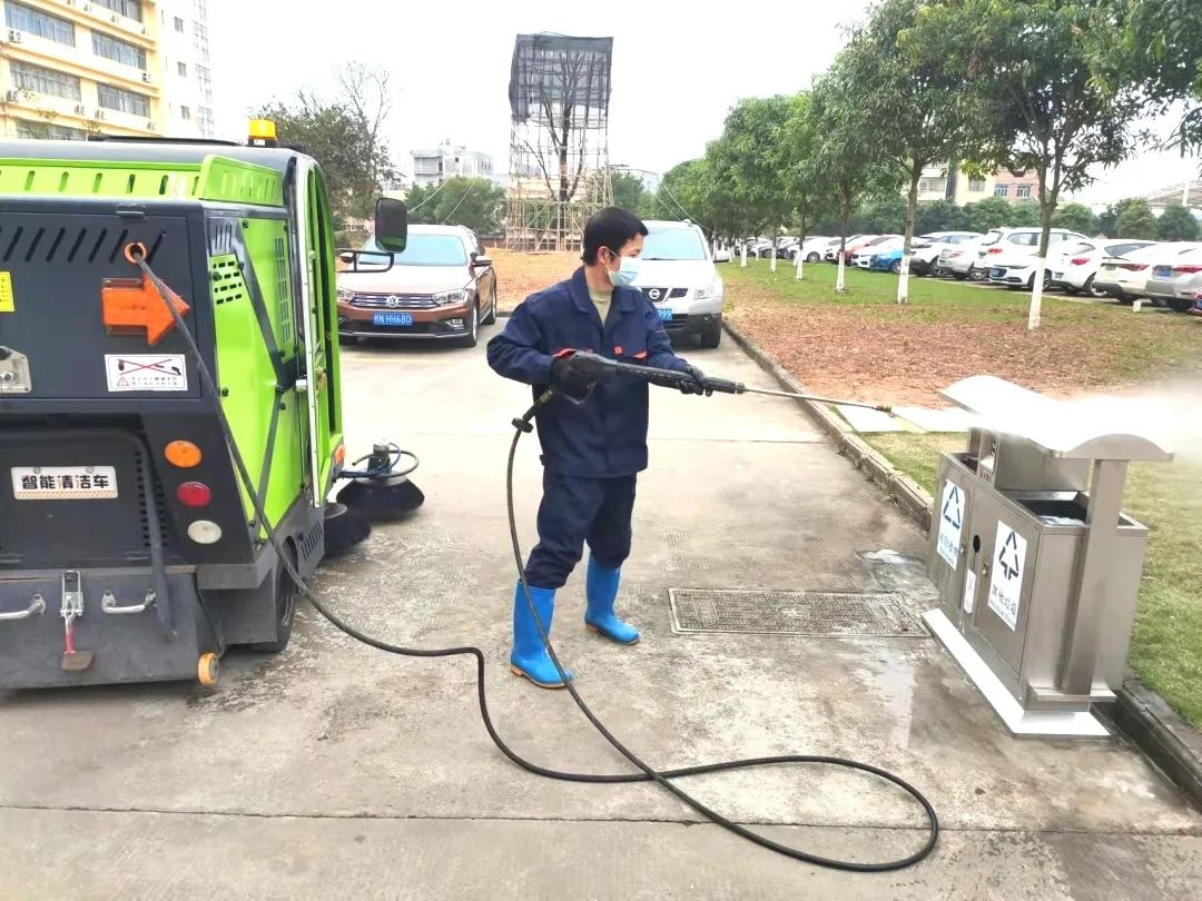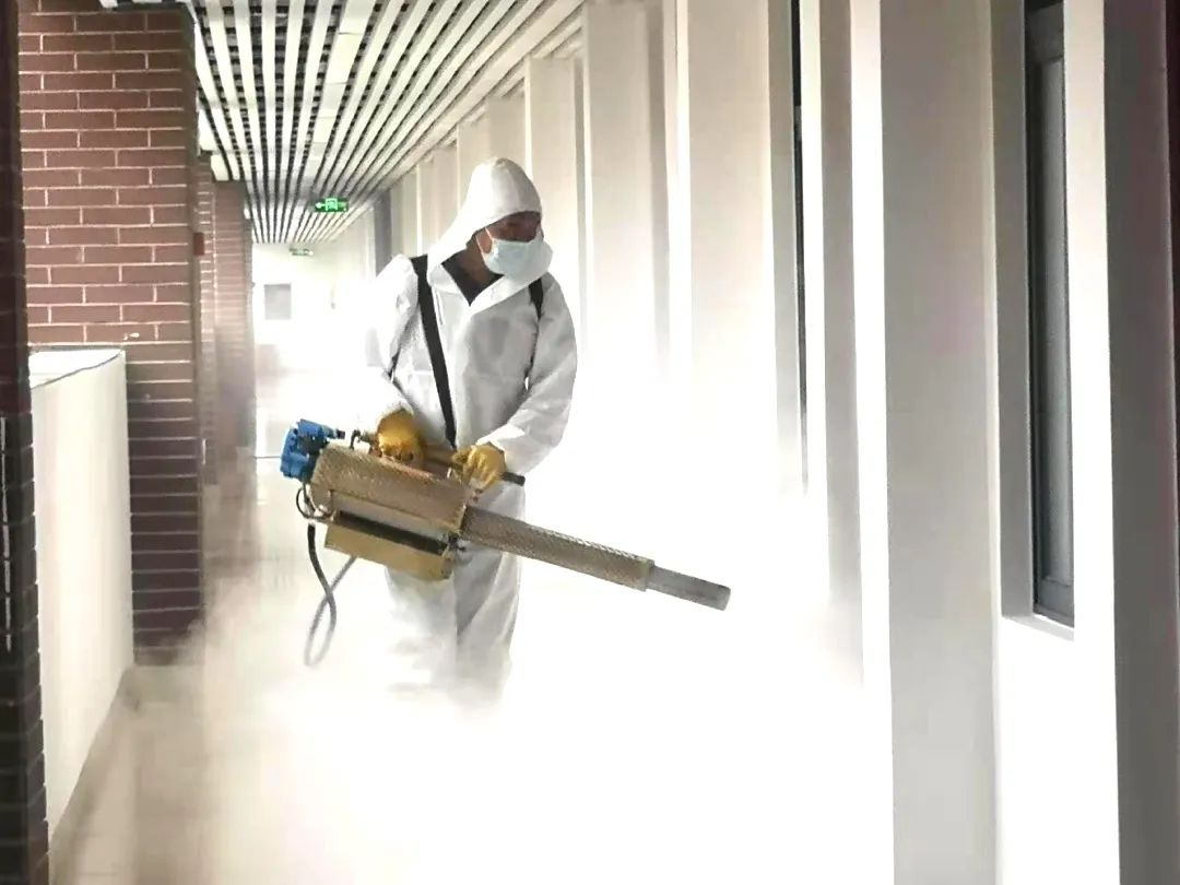 ▲后勤人员进行校园消杀工作