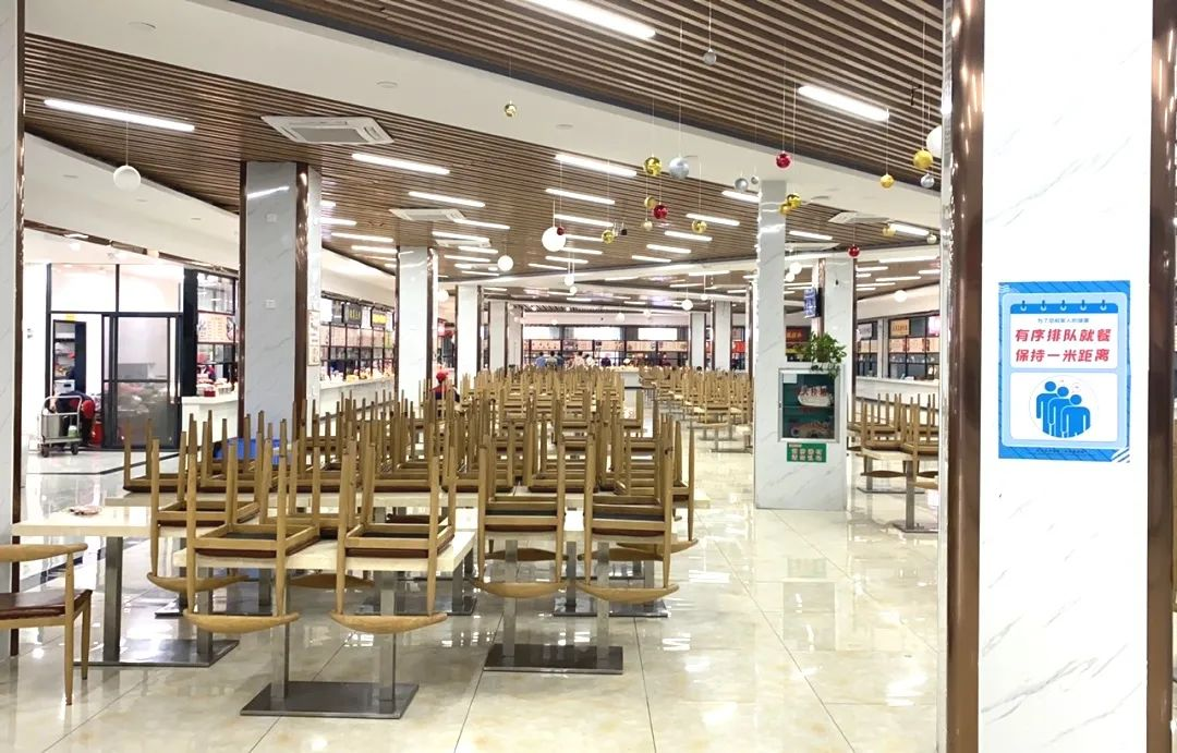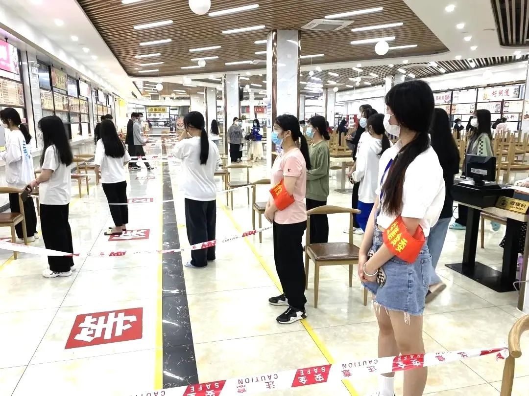 学校严格执行就餐时间分段制,延长供餐时间,以二级学院、专业、班级为单位分流,要求学生打包回寝室就餐,食堂不设堂食,志愿者协助间隔一米排队选餐等一系列措施,有效地限制了食堂人流量,极大降低了就餐过程中的传染风险。
