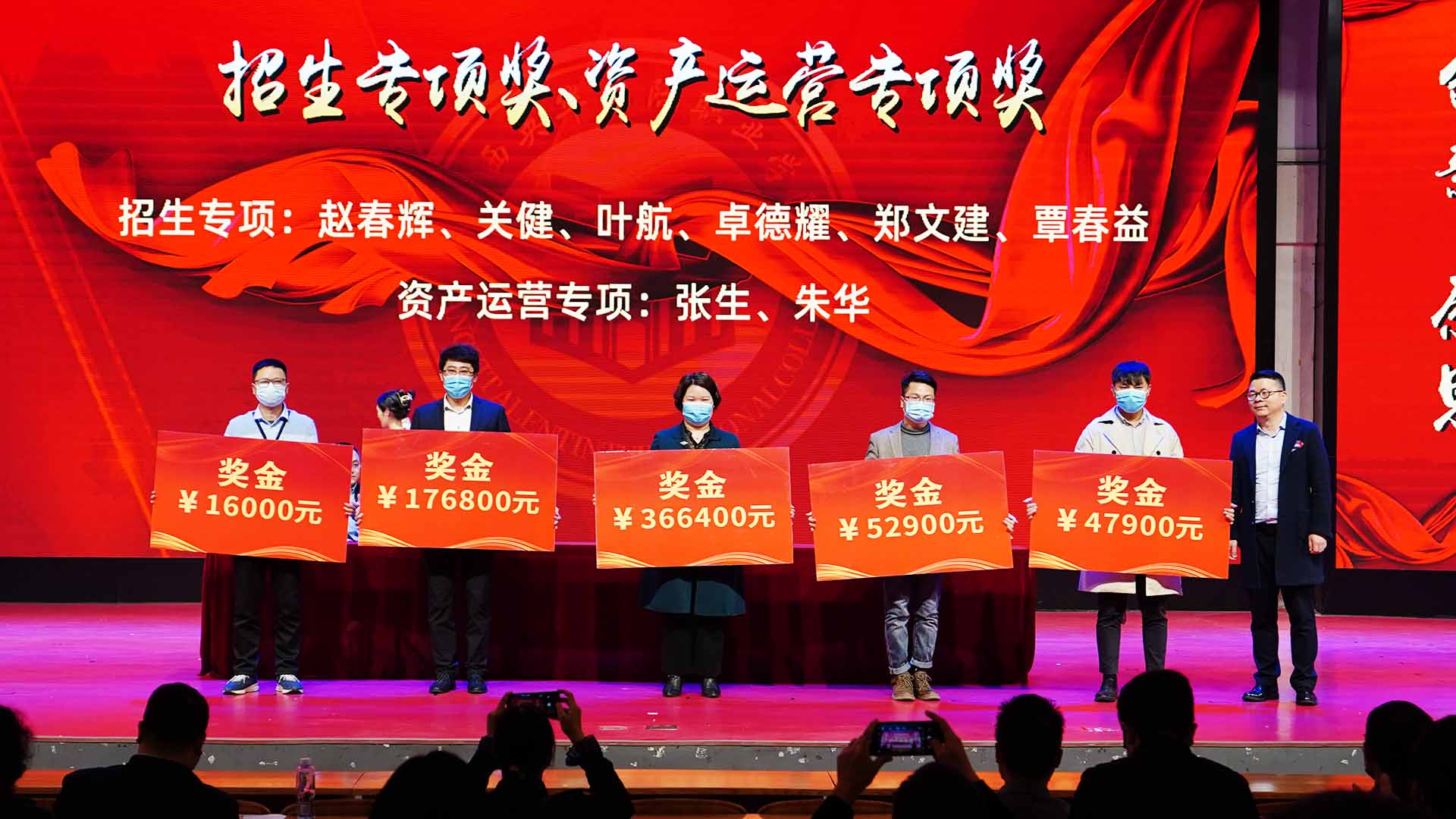 校长邹利斌为招生专项奖和资产运营专项奖获奖教职工颁奖