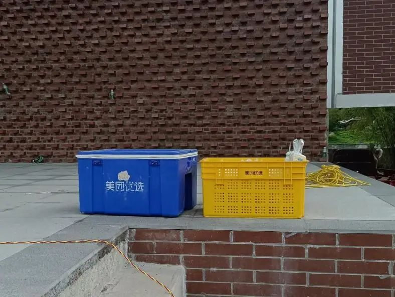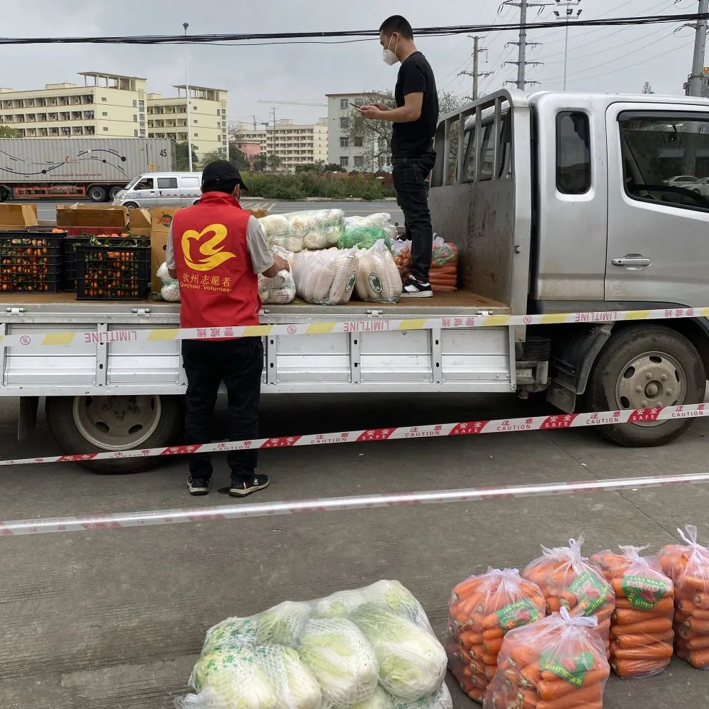 (捐赠的蔬菜通过志愿者运送至我校校外物资接收消杀点)