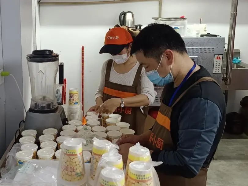 02 学校商户为医护人员免费提供早餐 自3月13日学校实施封闭管理以来,我校积极开展校内疫情防控工作,组织全校师生进行连日、多轮的全员核酸检测。学校千意小厨商户老板胡国胜主动提出,为医护人员和志愿者提供免费早餐服务。他们凌晨3点就开始加工制作,7点准时将早餐送到他们的手中。两个包子、一杯豆浆、一个茶叶蛋就是这么一份简单早餐,彰显了中国人在困难面前无私奉献,守望相助的优秀传统美德。