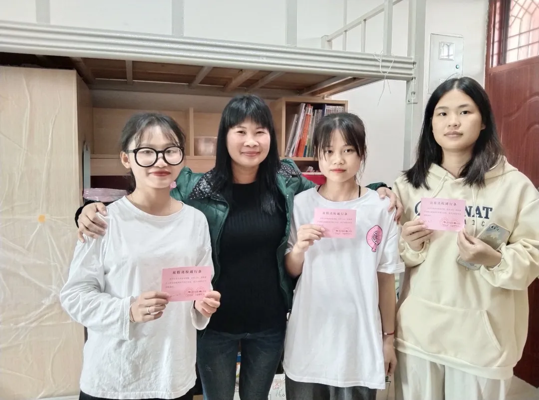 宿管老师确认同学已进行离校报备后,检查宿舍卫生、内务,合格后为同学们发放《放假离校通行条》,并嘱咐同学回家路上要妥善保管好自己的贵重物品,并注意旅途安全,到家后记得向老师及宿管老师报平安。