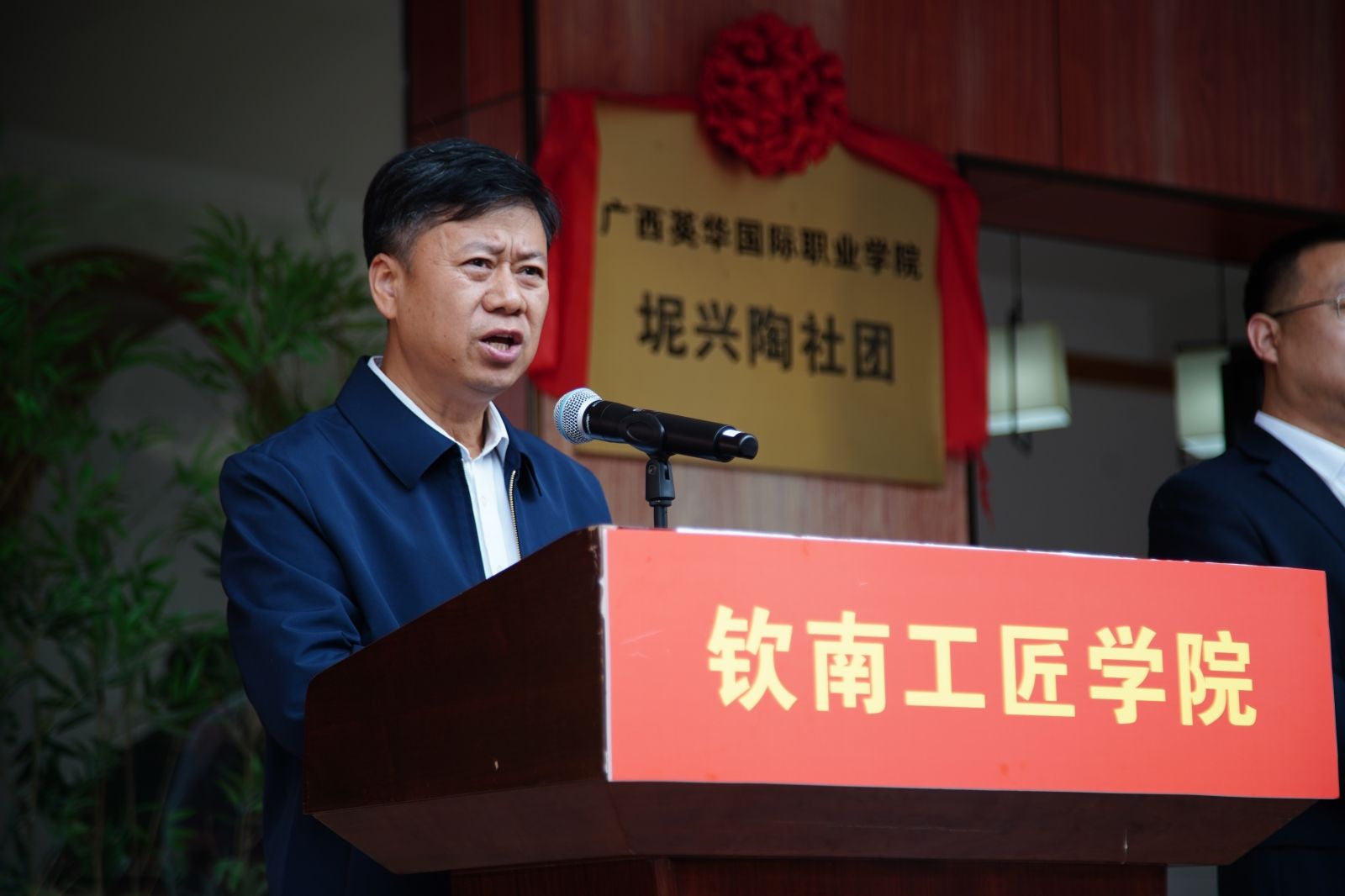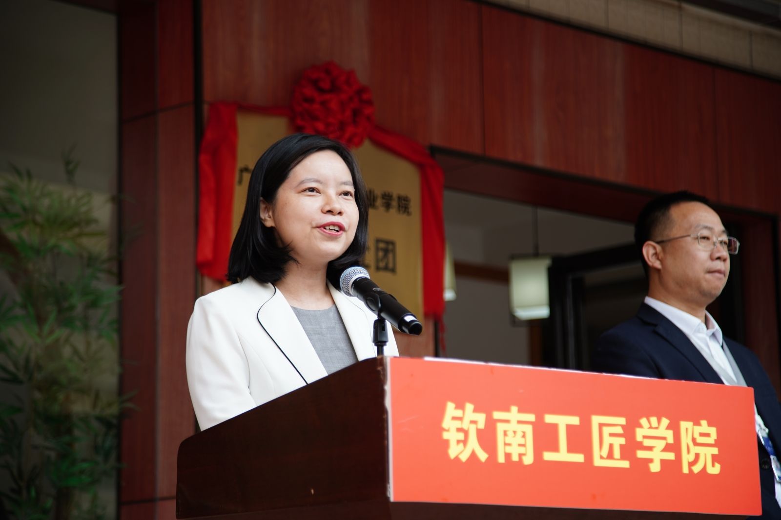 宋博对与会领导和来宾表示热烈欢迎和衷心的感谢,对钦南工匠学院揭牌表示热烈祝贺!他表示,钦南工匠学院的成立是进一步发挥劳模工匠示范引领带动作用,让更多工匠和劳动模范参与人才培养的有效途径,对推动产教融合发展,提升高技能人才能力水平,培养更高素质职业技能人才、能工巧匠、大国工匠具有重要意义。