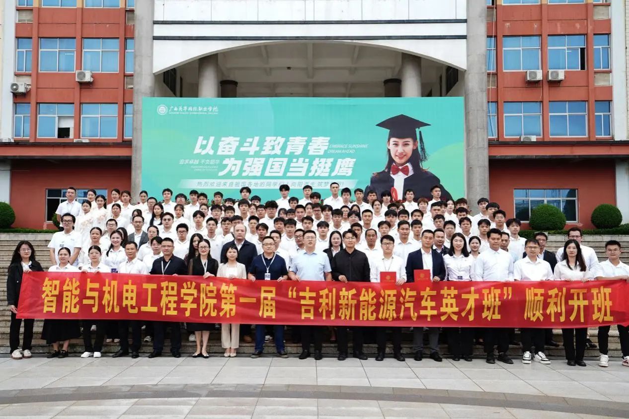 为落实学校“立德树人、因材施教、学以致用”的教育理念,推进校企合作、深化产教融合,进一步探索面向新能源汽车产业培养高素质技术技能人才的新模式,广西英华国际职业学院智能与机电工程学院与吉利汽车携手共建“吉利新能源汽车英才班”。10月10日,开班典礼在广西英华实验楼举行。