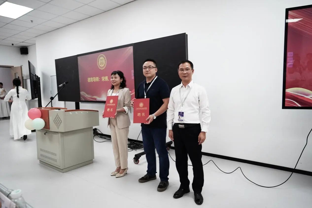随后,邹才深为吉利新能源汽车英才班导师颁发聘书。聘请宋博、叶春珍为德育导师,吉利集团招聘经理高涵为企业导师,黄刘梦老师为辅导员,机电系主任马传刚为班主任,李成贵教授、郭人玮老师为专业导师。