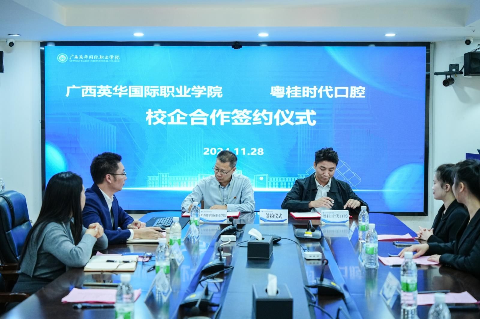 为全面贯彻落实现代职教发展理念,实现深度校企合作、医教协同,践行提质培优行动计划,进一步深化校企合作人才培养模式改革,推进校企在人才培养方面的深度合作,实现校企共同发展,11月28日,广西英华国际职业学院与粤桂时代口腔成功进行校企合作签约。