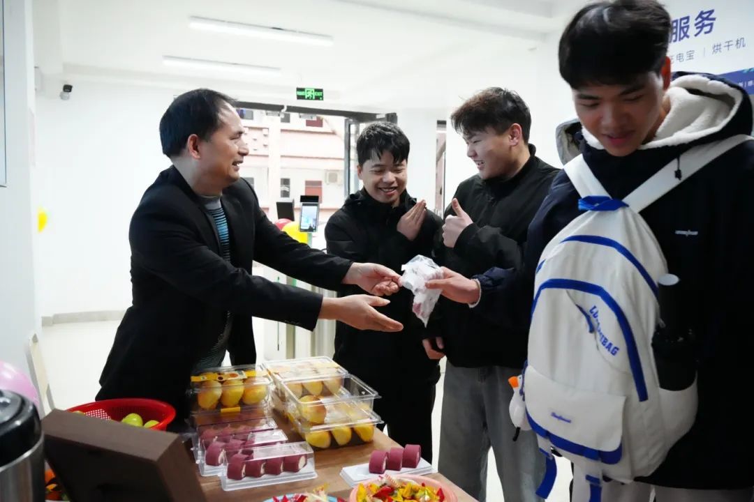 学校深知学生们历经旅途奔波后的疲惫,因此在每一个细节上都倾注了满满的关怀。工作人员递上的一杯杯姜茶、一块块蛋糕,传递着温暖与关怀。每一个微笑、每一句问候都饱含着对学生的真切关心,让学生们在踏入校园的第一刻便能深切感受到如港湾般的温暖。