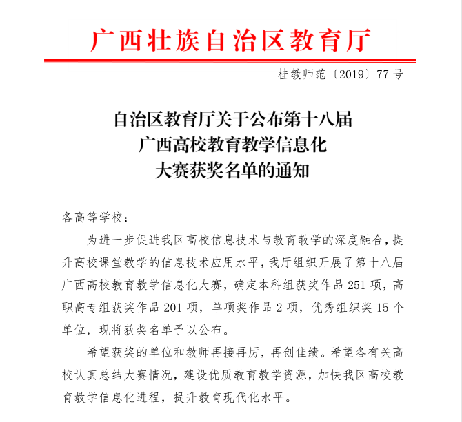 2019第十八届广西高校教育教学信息化大赛获奖