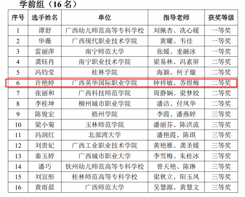 喜报!广西英华学子许艳婷获2023年全区师范生技能大赛二等奖