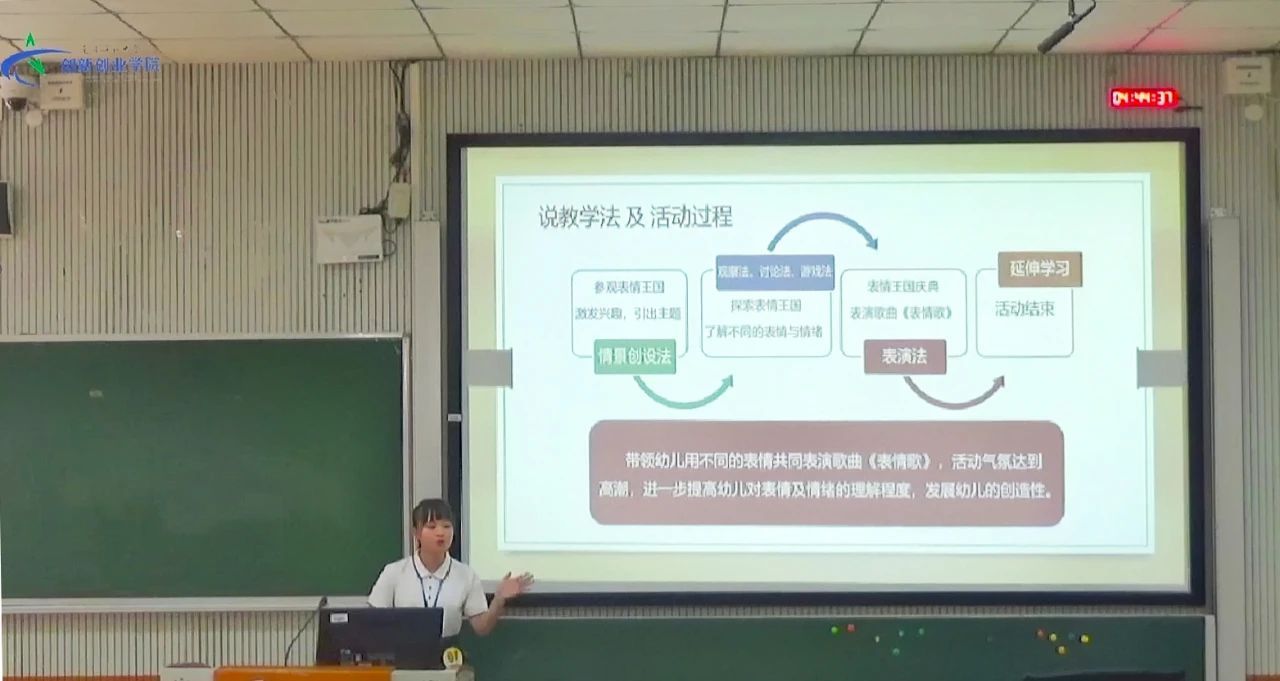 备赛后期,在不断的调整和训练中,逐一攻克试讲、说课、课件制作、教学内容、教学思路、教姿教态等。在正式比赛环节,许艳婷同学以完整连贯的教学设计、丰富的课堂活动、自信从容的姿态得到评委们的一致认可,以出色的课件给各个院校留下了深刻的印象。