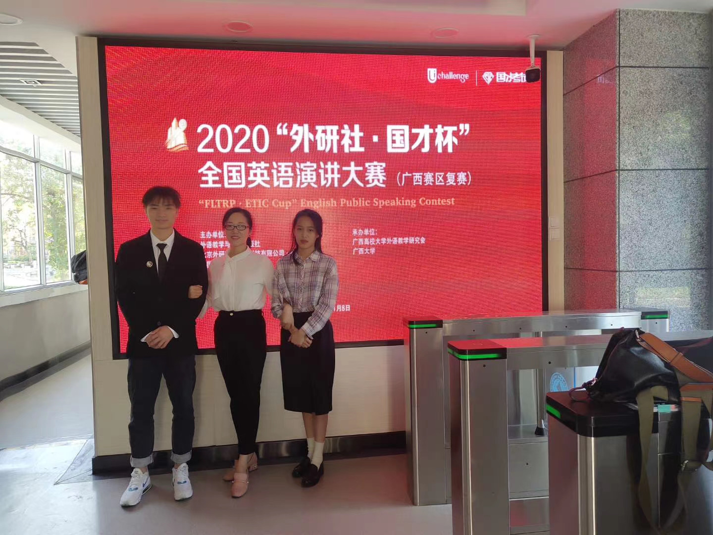 11月8日,2020年“外研社·国才杯”全国英语演讲大赛广西赛区复赛在广西大学落下帷幕,广西英华学院商务英语专业学生张亮、唐佳茵在指导老师黎珍珠的指导下,以扎实的语言功底、严谨的逻辑思维和极富感情的语调分别获广西赛区高职组一等奖、二等奖。此次获奖是继2018年以来,学校连续三年在该比赛中获得全区一等奖的殊荣!