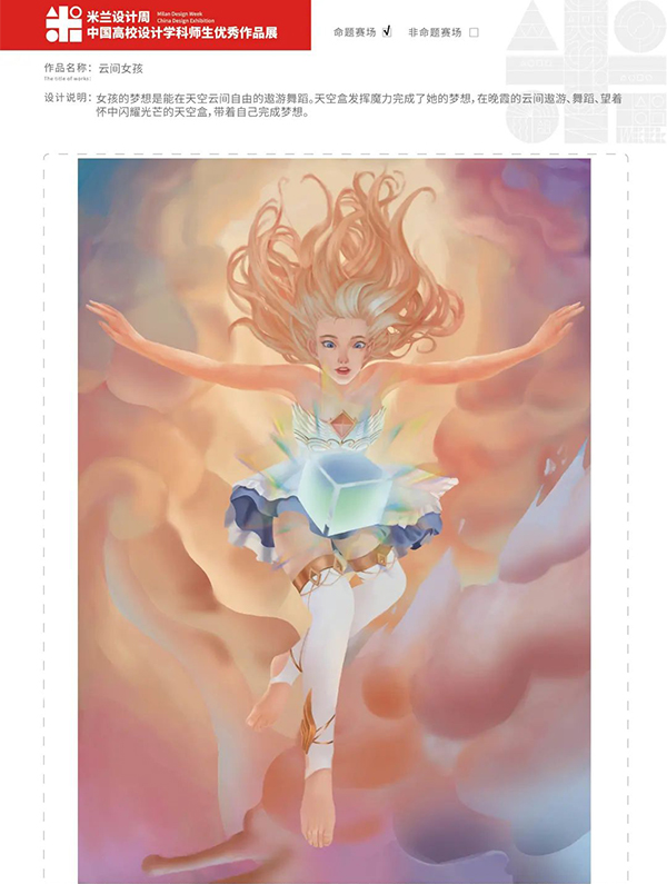 第六届“米兰设计周——高校设计学科师生优秀作品展”主题竞赛活动由中国教育国际交流协会、中国高等教育学会于2016至2019年期间联合发起并主办,旨在利用每年于意大利米兰举行的米兰设计周暨米兰国际家具展这一国际知名的设计行业盛会,搭建展示全国高校设计学科师生水平的国际化交流学习平台。活动面向全国高等院校艺术、设计专业师生开放作品征集投稿,展览每年举办一次,迄今已成功在米兰设计周展出优秀作品1200余件。此活动已连续入选“全国普通高校学科竞赛排行榜内竞赛项目名单”。