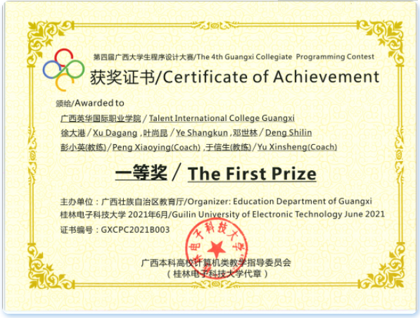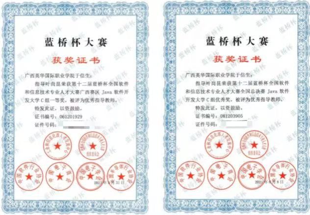 我校2019级软件技术专业邓世林、叶尚昆荣获广西区一等奖,并成功拿下国赛入场券,这已经是学校连续五年闯进国赛。此外,其余6名学生分别获得二等奖2项、三等奖4项。 二、蓝桥杯官方赛事