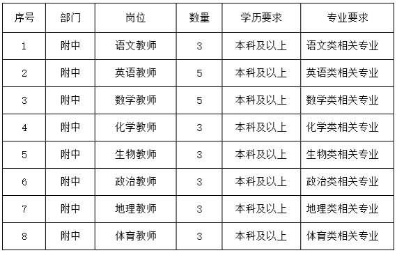 4.优先考虑优秀应届师范类专业毕业生,要求专业知识扎实,在校成绩优秀,有培养潜质。