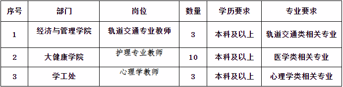 1.本科及以上学历,轨道交通类、护理类、临床医学类、心理学类专业,具有相关专业研究生及以上学历或具有高级职称者优先录用。