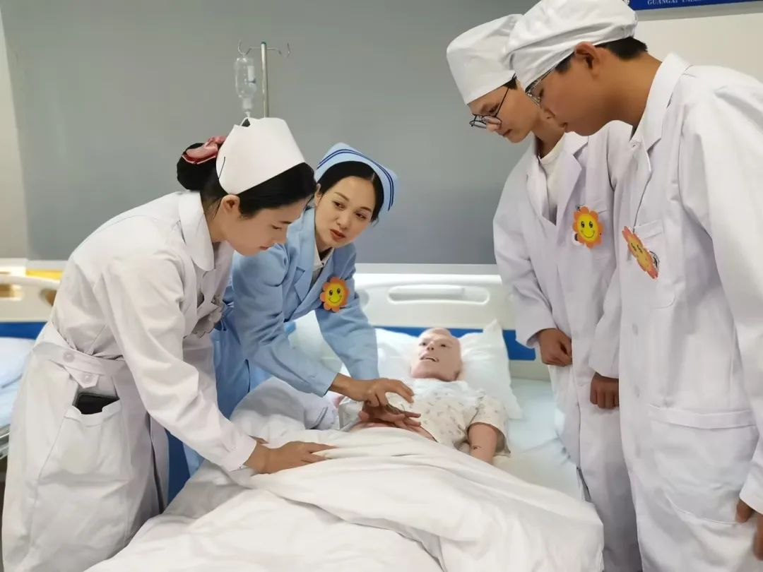 第二年,在学院领导的支持下,陆远英提前备赛,先在校级开展了护理技能比赛筛选种子选手并开展培训。除了操作技能,还对参赛学生的心理素质、临床思维、应变能力等方面进行培训。在陆远英的带领下,我校大健康学院护理专业的选手与广西医科大学等院校同台竞技,成功斩获二等奖一项、三等奖一项。