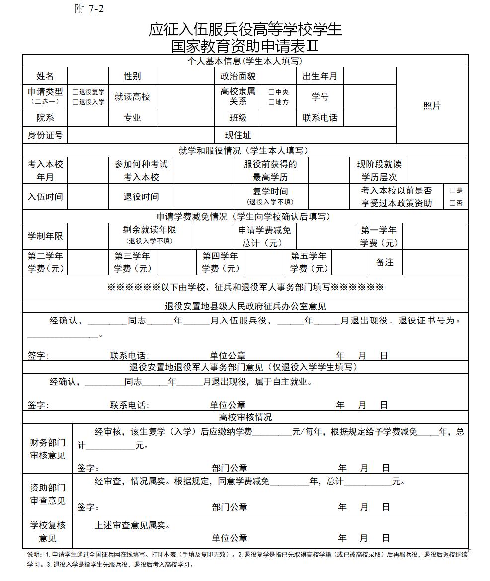 应征入伍服兵役高等学校学生国家教育资助申请表II