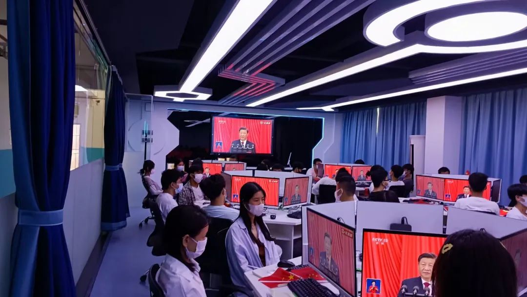 师生收看党的二十大开幕会盛况视频