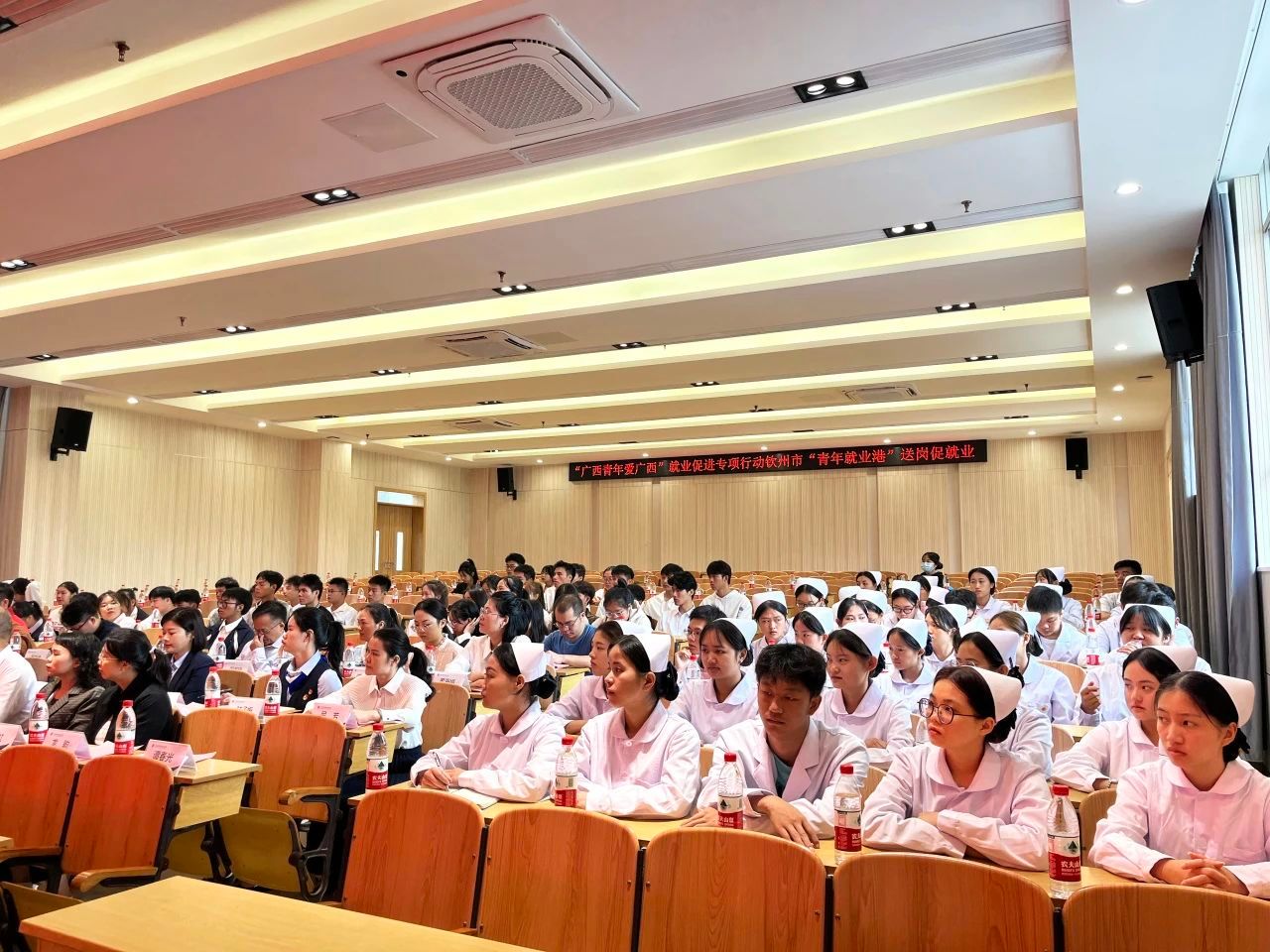 共青团钦州市委副书记杨颖主持活动,学校党委书记黄家良致辞,钦州市人力资源社会保障局副局长陈建统作高校毕业生就业形势分析和政策解读。学校校长助理叶春珍,来自钦州市企事业单位的30多位嘉宾,共同参加活动。