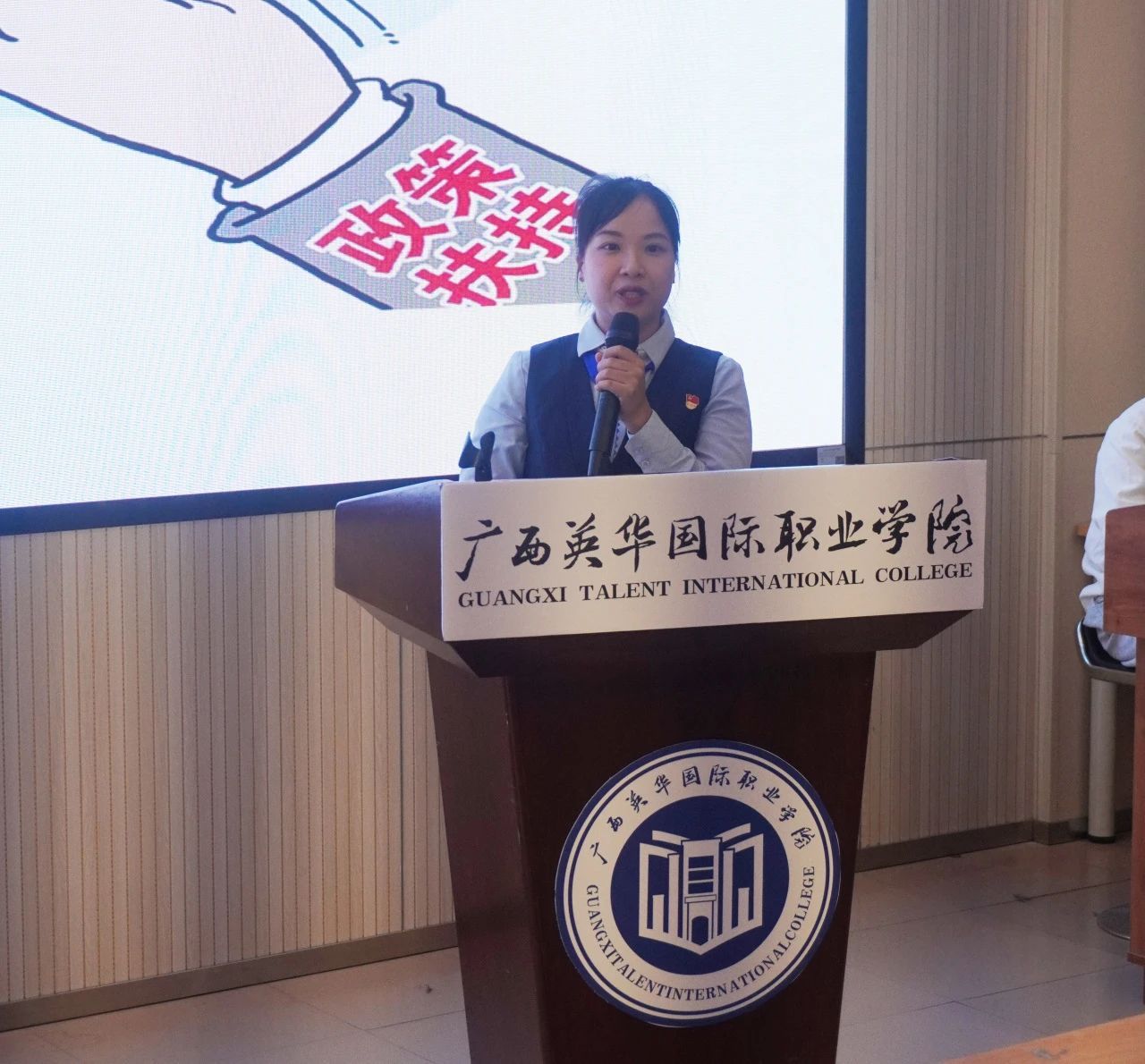 活动中,广西北部湾银行团委书记李春慧、中国石化钦州分公司团委书记、安全部副经理李慧芳等嘉宾,分别为同学们介绍了就业岗位招募计划,表示欢迎英华学子到企业实习、就业。