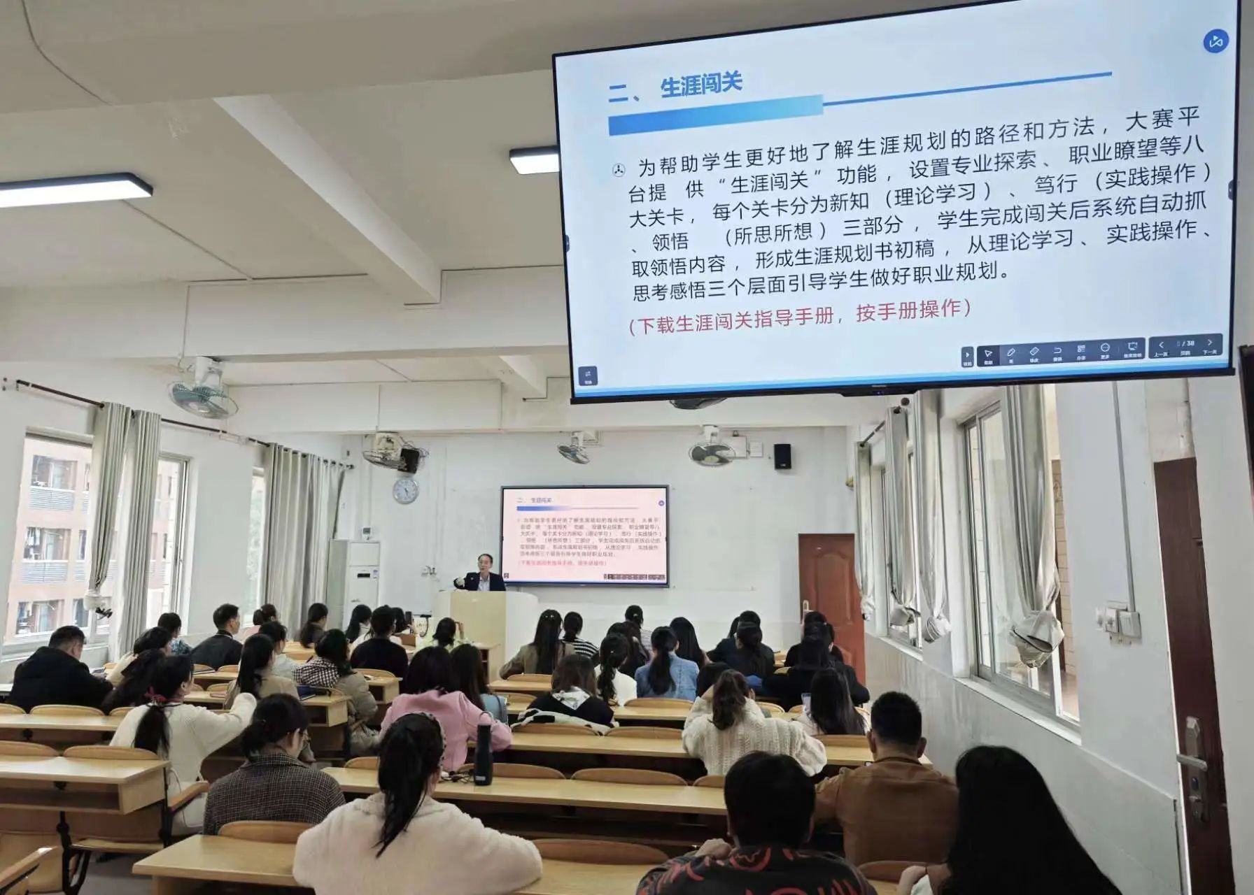 周教授授课内容从生涯教育落实、落地视角,以赛事概况为切入点,基于赛事优胜模型,针对怎么比、比什么、谁来比、用啥比进行全面准确、深入浅出的讲解,课程观点鲜明、内容精彩,既有理论高度,又有实践深度。