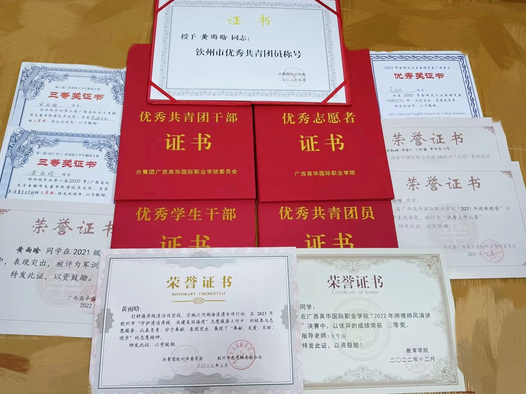 在校期间,黄雨晗为2022年广西壮族自治区“青马工程”高校班学员,担任校团委学生副书记、应用英语班宣传委员,曾获钦州市优秀共青团员、2023年大学生英语竞赛二等奖、2023年广西大学生翻译大赛二等奖等荣誉。踏上工作岗位的她,对于自己的未来,也有着清晰的规划:目前重中之重就是认真备考教师资格考试。这次实习,是一次很好的实践机会,在学校学到的知识、老师传授的经验,都在此刻变成具象。一些在书本上碰不到的特殊情况,会以各种各样的形式出现在你的面前,每一次完美的处理,都是对自己能力的精进。”