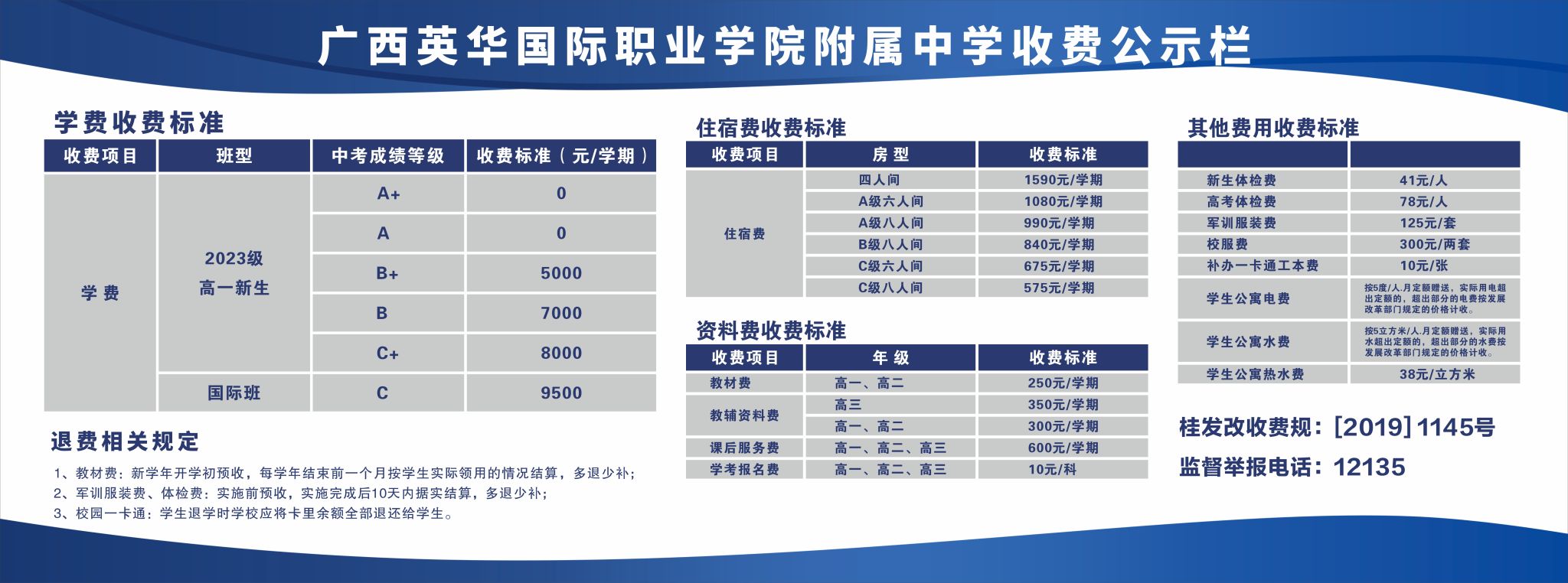 2023年广西英华国际职业学院附属中学收费公示