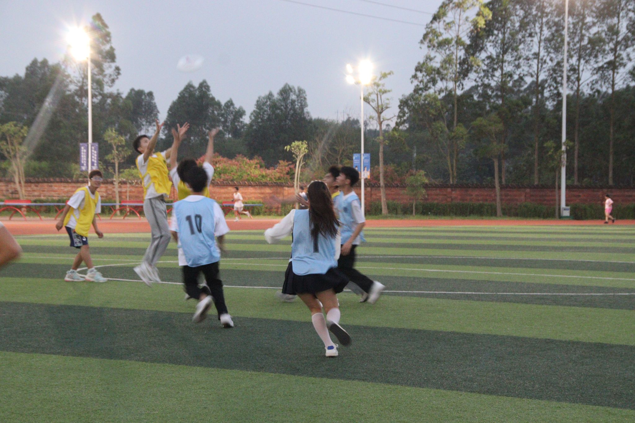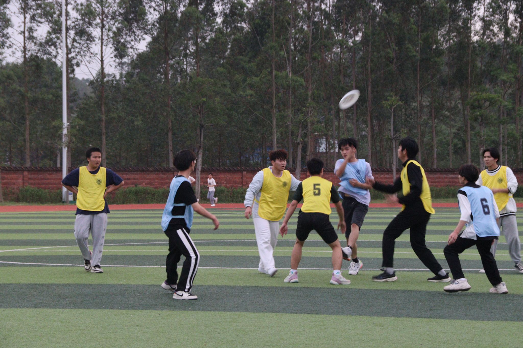 在同学们基本掌握飞盘抛接技术后,分多组进行友谊赛,队员们自觉遵守规则,灵活使用策略,相互默契配合,绿荫场上气氛被推向高潮。比赛场上,同学们全力以赴,时间随着飞盘的飞出而变慢,所有人将目光集中于那个小小的飞盘,奔跑、躲避、投掷,每一个环节都离不开团队的配合。同学之间团结协作,互相鼓励,坚守“友谊第一,比赛第二”的态度。“同学们的关系仿佛在飞盘的一次又一次起飞降落中越来越亲近了”,参加比赛的卢小平同学这样说道。