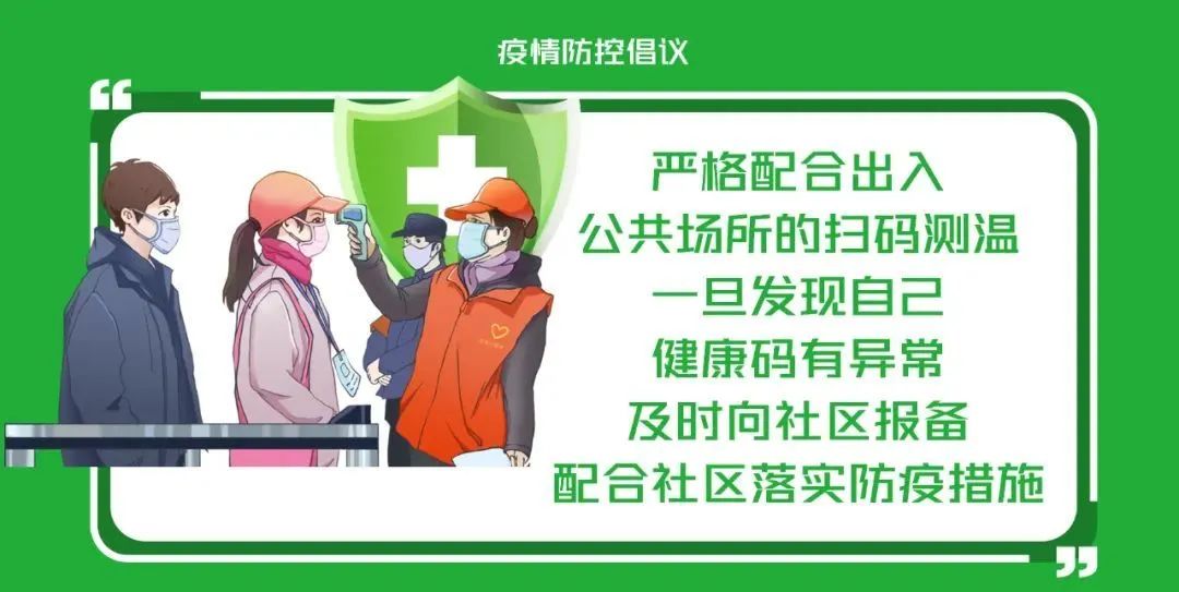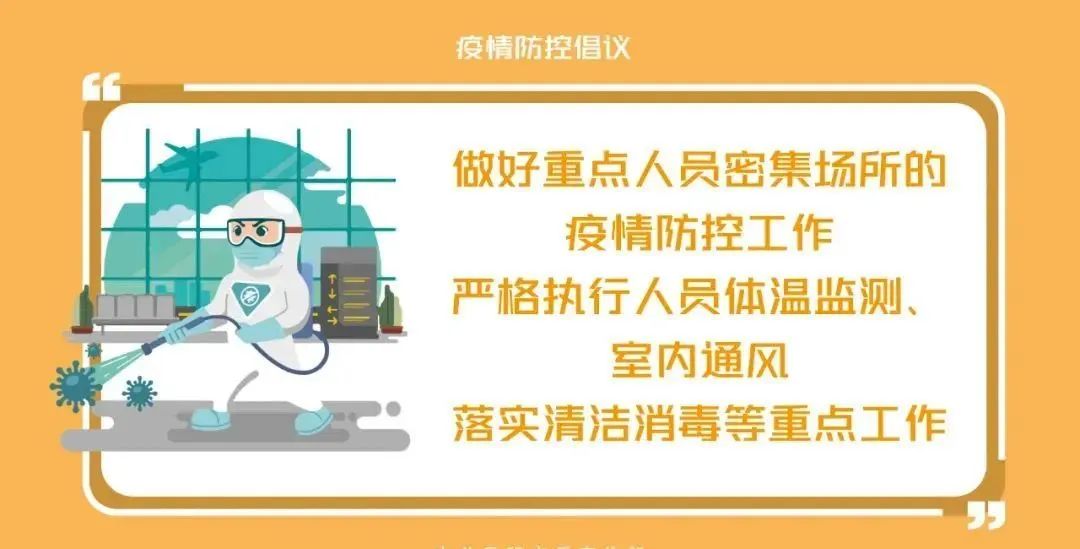 公共场所要继续做好人员进出管理,严格落实测温、“三码联查”(健康码、行程码、核酸检测结果)等防控措施,做好场所通风、清洁消毒等工作,并避免人员聚集。
