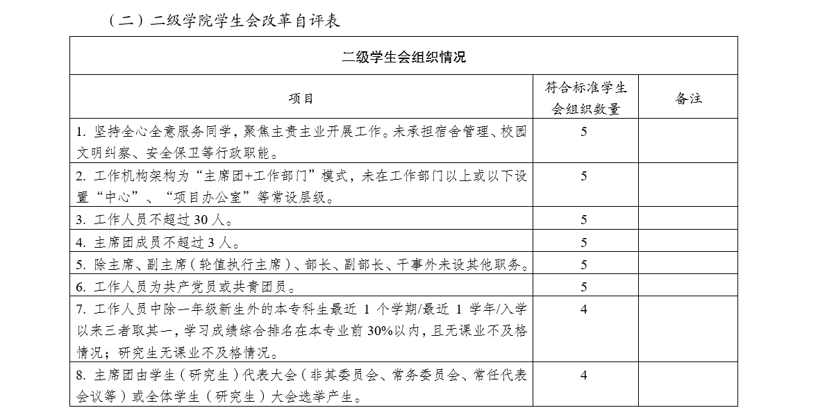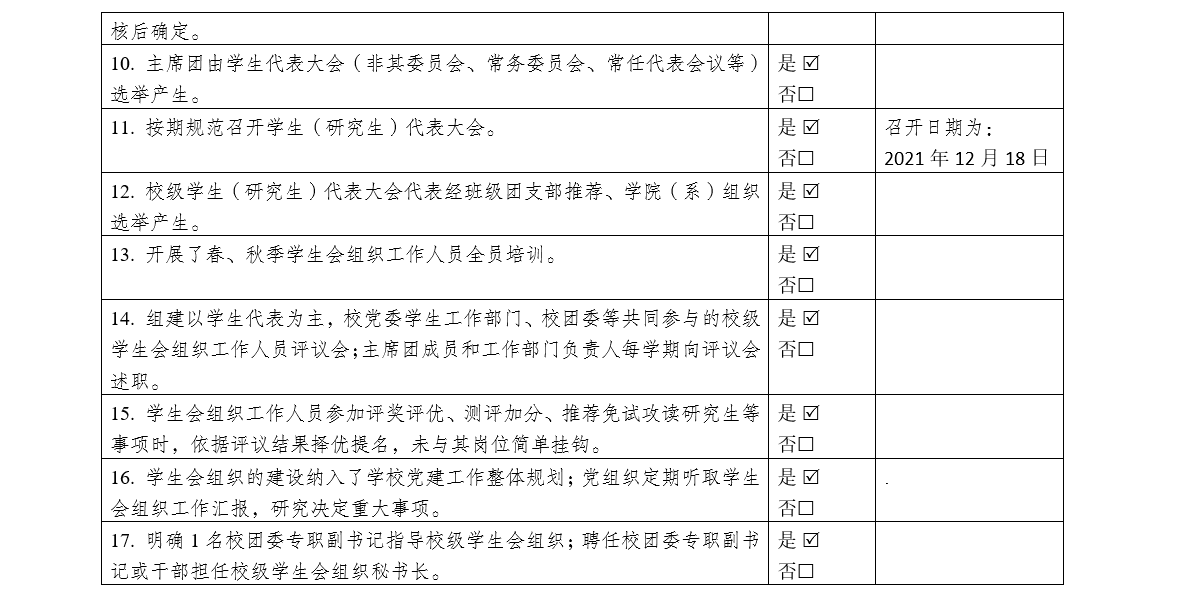 为落实共青团中央、教育部、全国学联联合下发的《关于推动高校学生会(研究生会)深化改革的若干意见》,接受广大师生监督,现将我校截至2021年11月学生会(研究生会)改革情况公开如下。