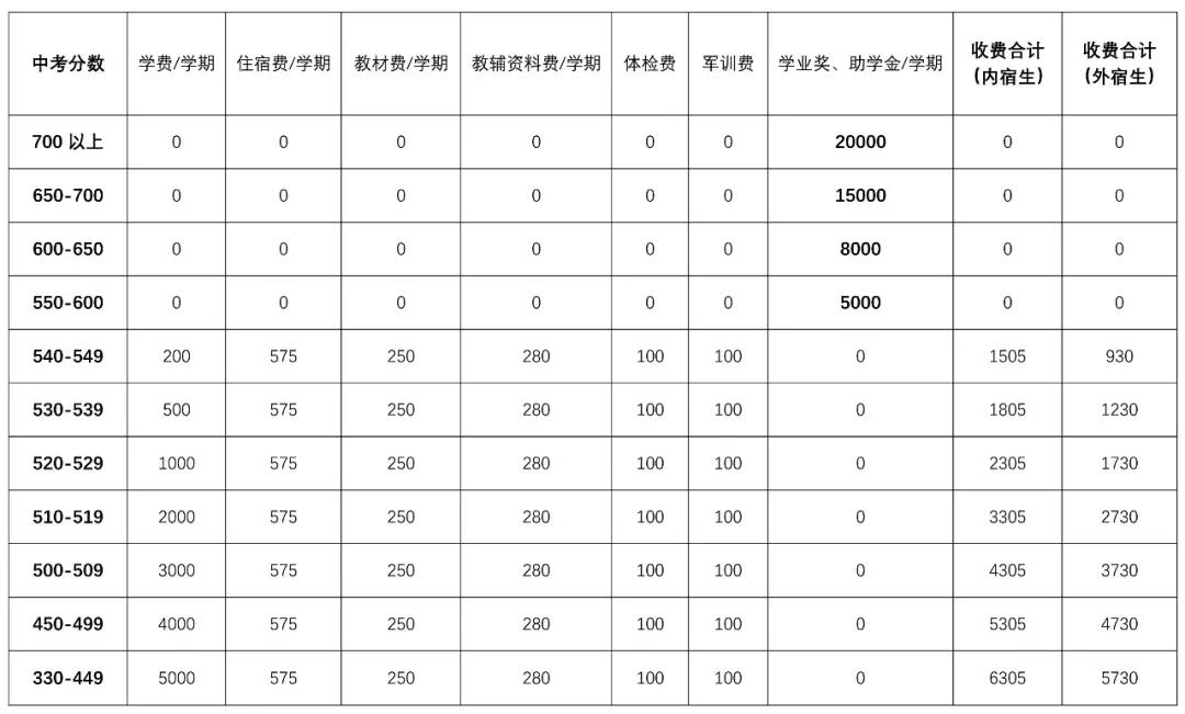 英华附中收费标准