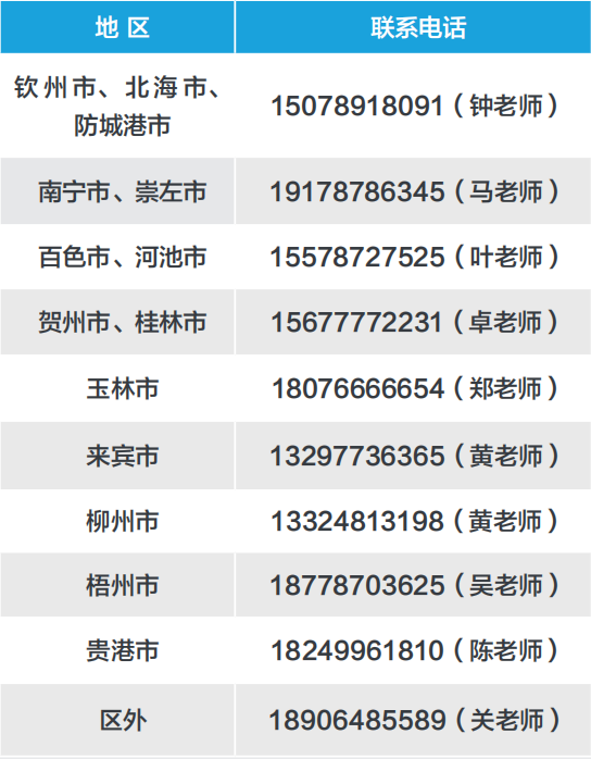 2.广西片区负责老师咨询电话