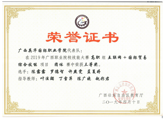 2019年广西职业院校技能大赛高职组互联网+国际贸易综合技能项目团体三等奖