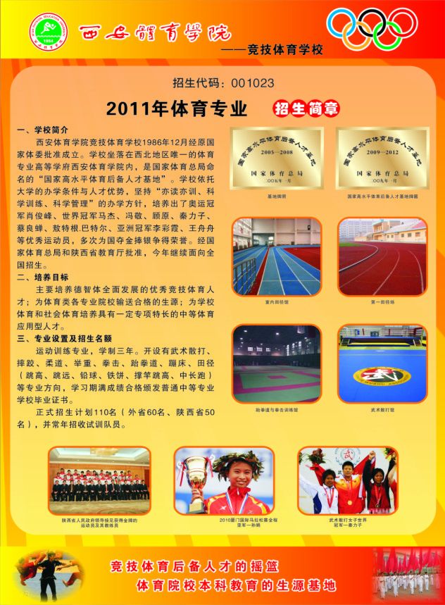 西安体育学院竞技运动学院 西安市碑林区含光北路65号 邮编:710068 联系电话:029-88409750