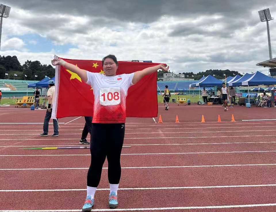 热烈祝贺铅球队蒋沁煊在中日韩青少年运动会中代表中国队斩获冠军