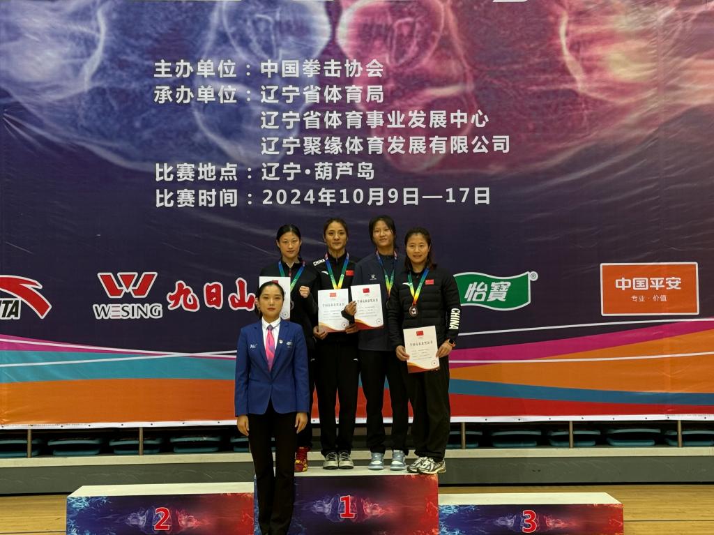 2024年全国女子拳击冠军赛于10月9日至17日在辽宁葫芦岛进行。本次比赛吸引了国内优秀女子拳击选手参加,包括代表国家队参加巴黎奥运会的拳手,比赛设12个级别,经过激烈角逐,最终成绩落定,我校教师刘飘飘以5:0比分,在决赛中取得52-54公斤级冠军,我校学生田淑文获得66-70公斤级亚军、朱亚姝、齐昕宇分别取得第五名的好成绩。