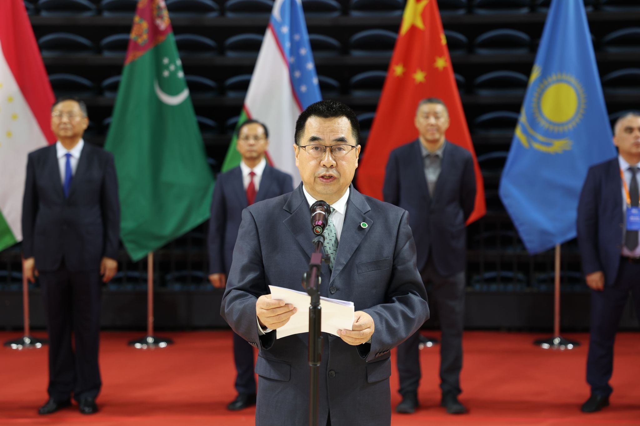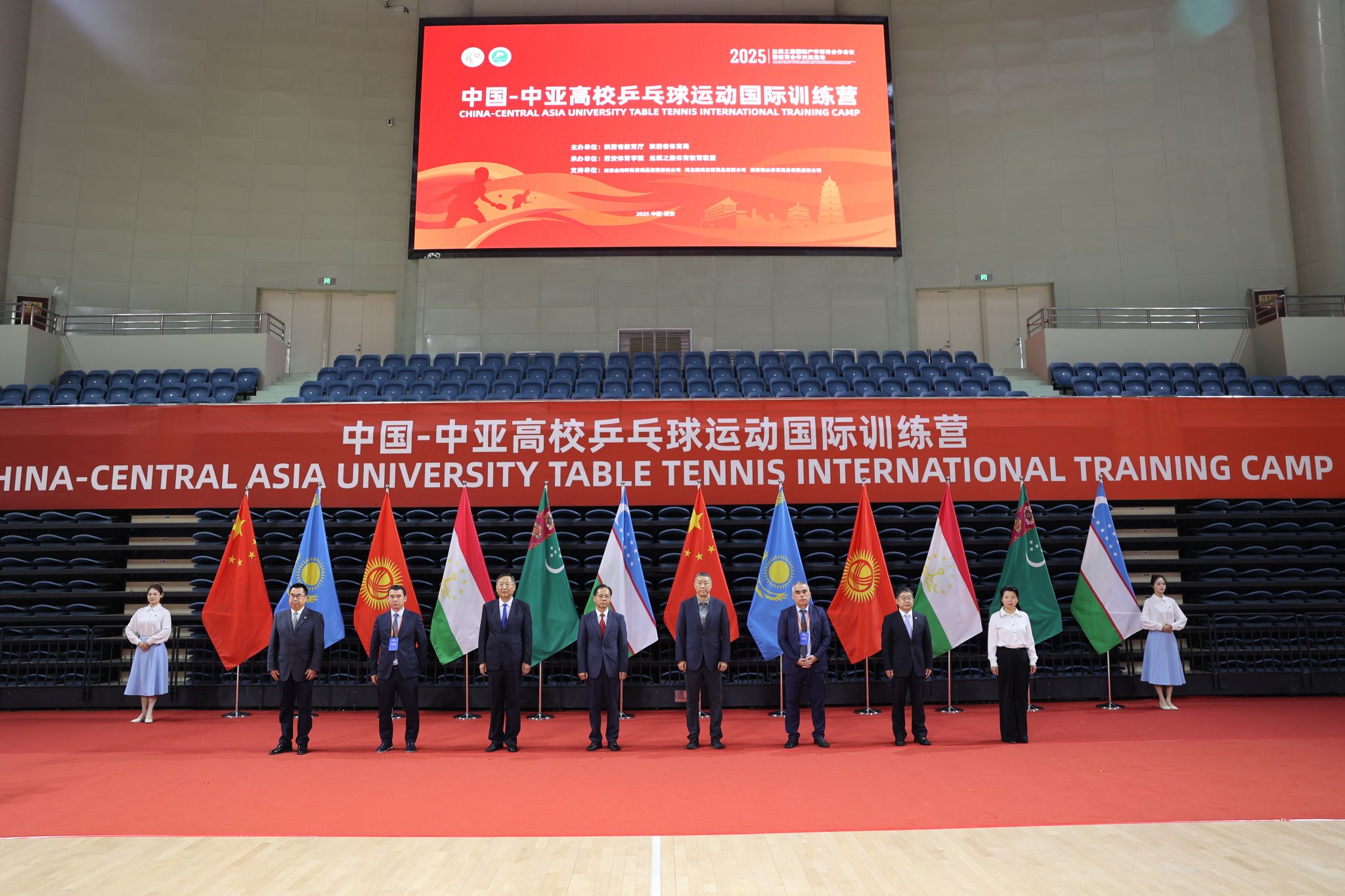 为贯彻“一带一路”倡议,促进中国与中亚国家体育文化交流,由陕西省教育厅、陕西省体育局主办,西安体育学院承办的“中国-中亚高校乒乓球运动国际训练营”于5月24日上午在我校鄠邑校区开营。乌兹别克斯坦国立体育大学校长马特卡里莫夫·拉希德·马沙里波维奇,乌兹别克斯坦体育部专业体育教育机构事务管理司司长阿尔济库洛夫·穆库姆·乌拉洛维奇,中国-中亚机制秘书处吴颖钦参赞,陕西省体育局副局长邹军,陕西省教育厅二级巡视员高巍,鄠邑区副区长吴宁超,西安体育学院党委书记刘子实,党委副书记、校长李富生,副校长谢英出席开营仪式。来自乌兹别克斯坦、吉尔吉斯斯坦等中亚高校以及西安体育学院、西北大学、西安石油大学的32名学生运动员齐聚古丝绸之路起点西安,以球会友、共话体育文化交流。