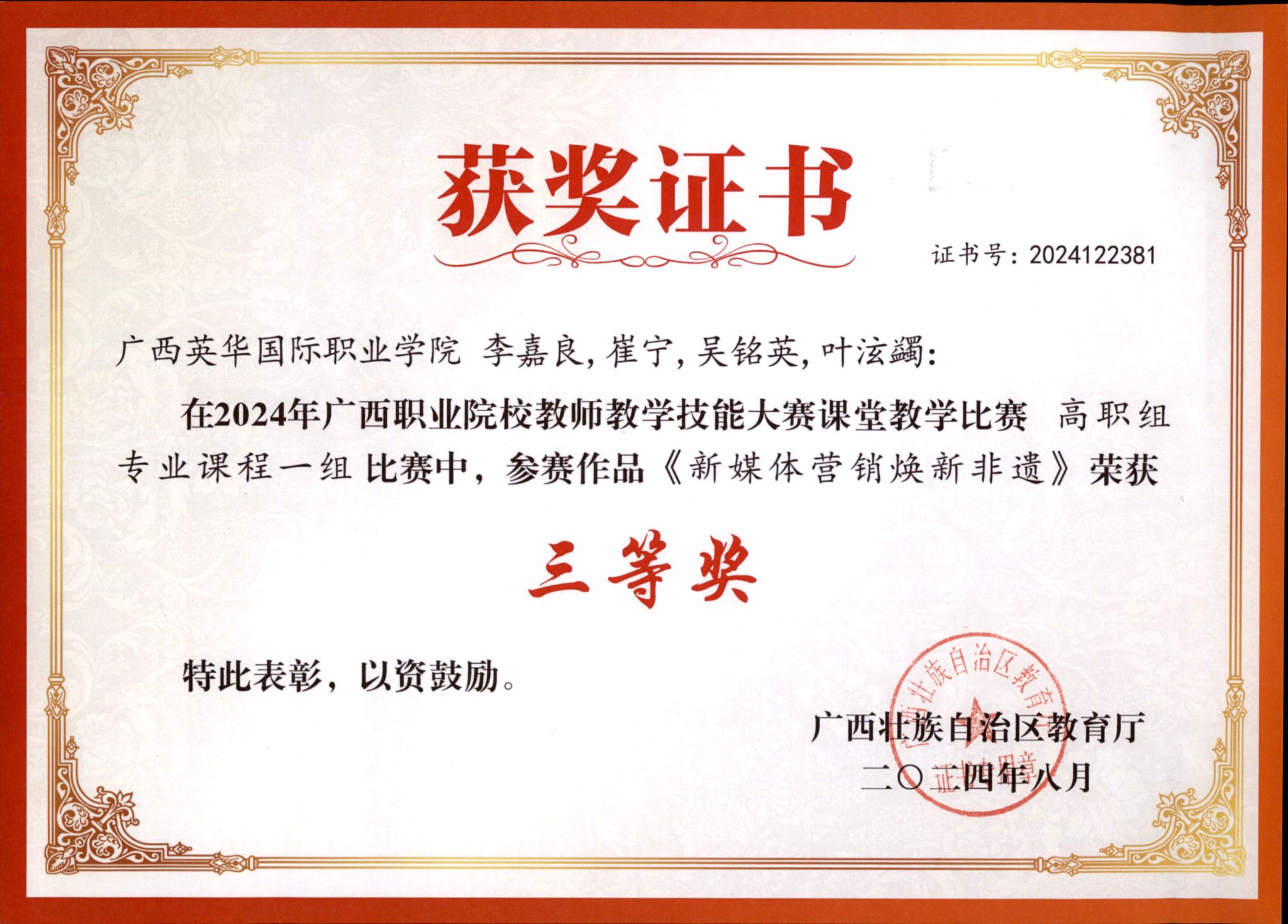在期刊发表论文十余篇;主持完成广西壮族自治区级中青年科研项目:《广西北部湾经济区国际多式联运之海铁联运发展研究》:参与完成省级科研项目3项:主持广西区教学改革项目1项;参与完成省级教改项目3项;参与完成广西教育科学“十四五”规划课题1项;参加广西区教学技能竞赛获省级奖项4项,指导学生参加广西区技能比赛获省级奖项7项。