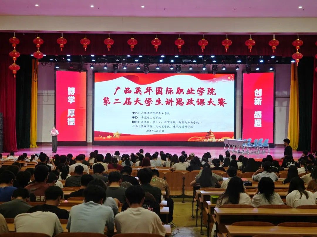 5月14日,广西英华国际职业学院第二届大学生讲思政课大赛在图书馆报告厅盛大启幕。来自五个学院的十支参赛队伍,以思政课程为坚实基石,凭借独特的青春视角,深情讲述思政故事,用充满蓬勃朝气的青春之声,生动诠释思政内涵。