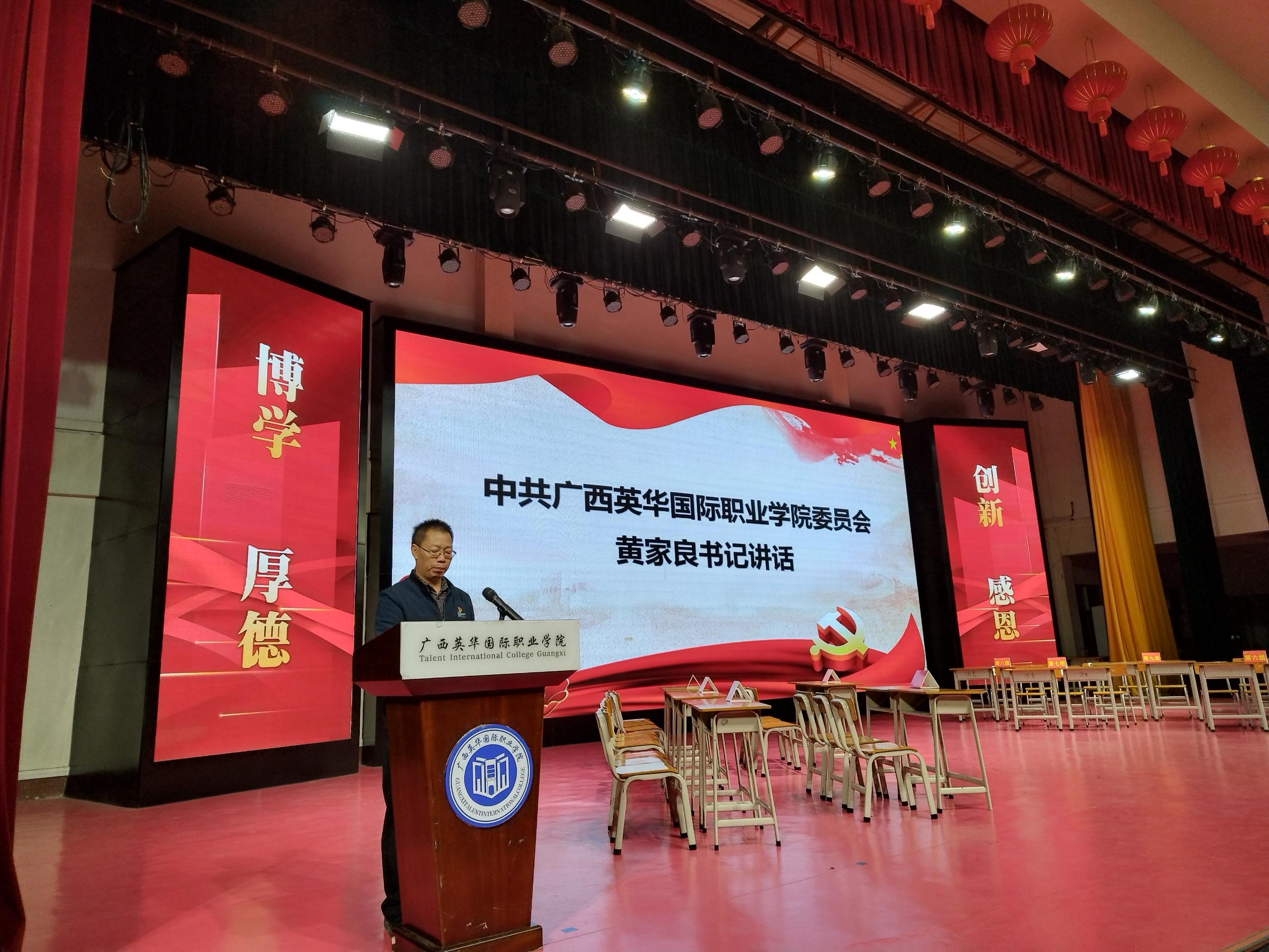 为深入学习宣传贯彻党的二十大精神,广西英华国际职业学院 部署开展系列工作,大力推进党的二十大精神进校园、进课堂、进头脑。11月30日,我校如期举办“学习党的二十大精神知识竞赛”决赛,大健康学院、教育学院、建筑与设计学院、经济与管理学院、智能与机电工程学院等五个学院十支队伍角逐桂冠。学校党委书记黄家良、党委办副主任蓝振师及二级学院党总支书记出席竞赛活动。