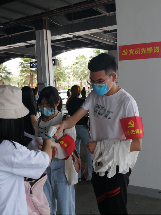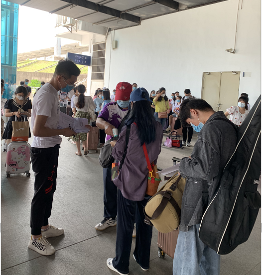 党旗领航,党员做先锋。根据学校学生返校工作安排,5月13日、14日,马克思主义学院梁淳一、黄嘉莹、李其军、莫铠瑞等4名党员老师被派到钦州动车东站负责接待学生返校工作。