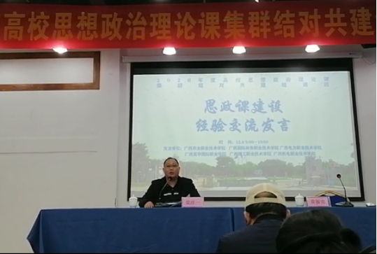 为夯实学院思想政治课教师的教学能力基础,全面提升课程教学水平,2020年12月5至6日,马克思主义学院组织9名教师参加2020年度思想政治理论课集群结对共建培训班。一同参训的学校有广西机电职业技术学院、广西农业职业技术学院、广西电力职业技术学院、广西国际商务职业技术学院、广西理工职业技术学院等5所高职院校。