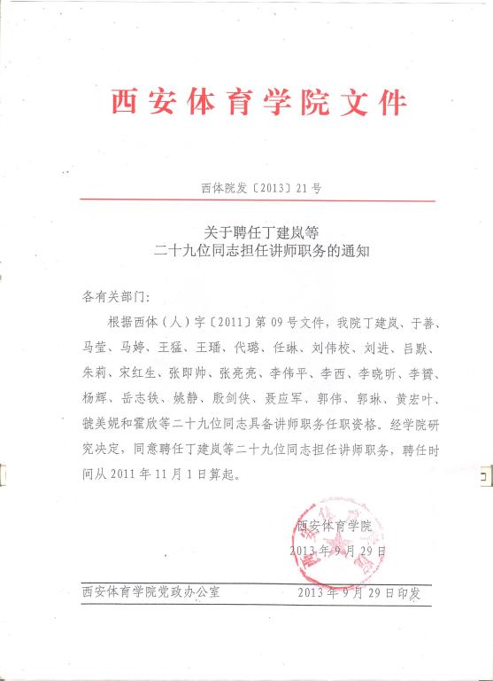 关于聘任丁建岚等二十九位同志担任讲师职务的通知