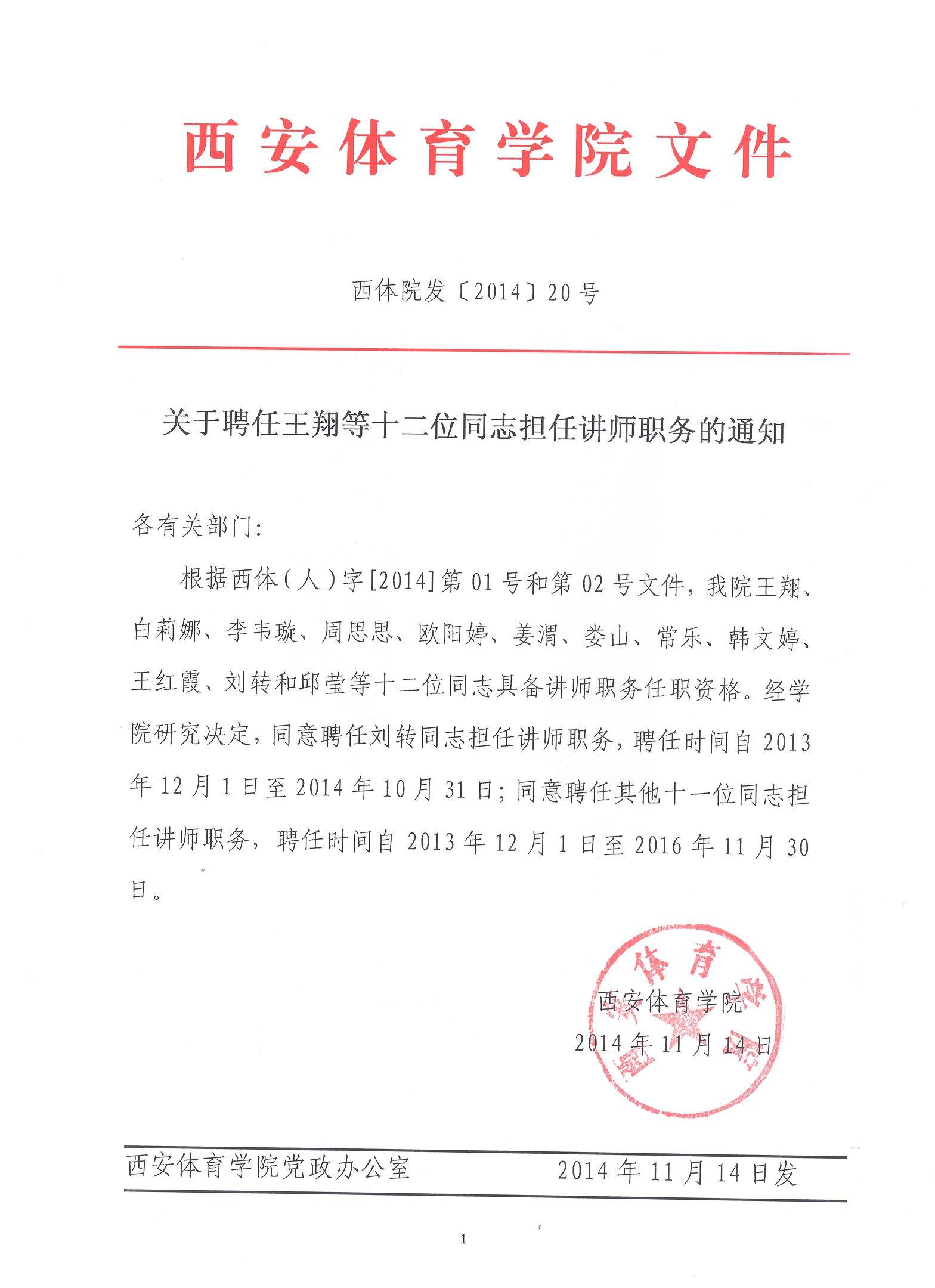 关于聘任王翔等十二位同志担任讲师职务的通知
