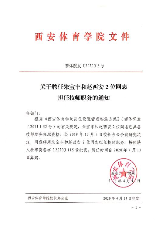 关于聘任朱宝丰和赵西安2位同志担任技师职务的通知