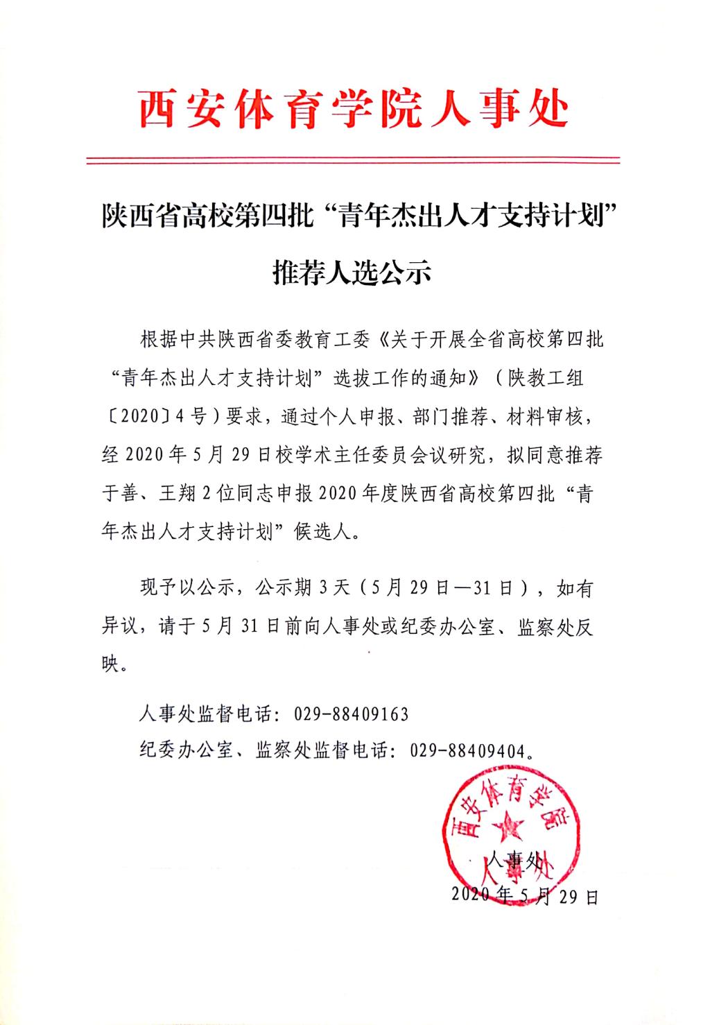 陕西省高校第四批“青年杰出人才支持计划” 推荐人选公示