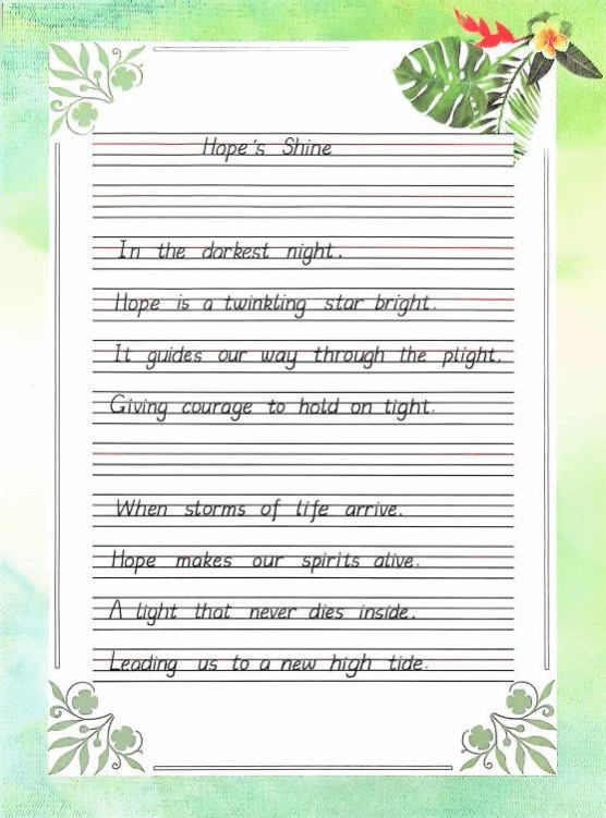 近日,由通识教育学院主办的“魅力笔尖,‘英’你精彩”英语书写比赛圆满结束。本次比赛提升了学生的英语书写能力,培养良好的书写习惯,激发英语学习兴趣,充分展现了当代大学生的英语书写才华与艺术创造力。