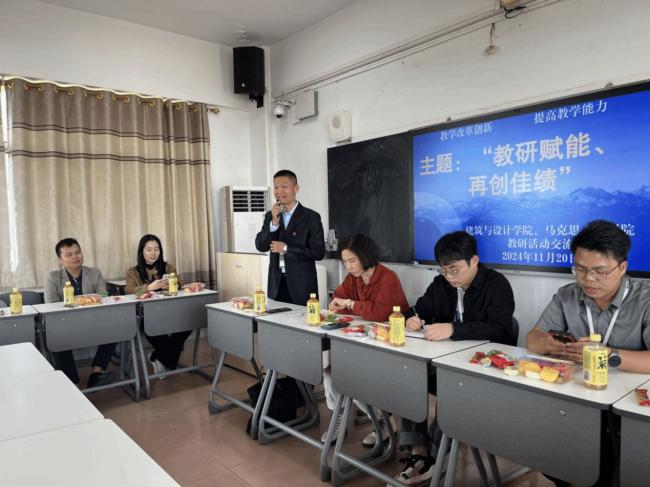 以提升教学质量和促进科研创新为主题的教研活动,旨在通过集体研讨、交流与分享,进一步推动教育教学改革,提高教师的教学能力和水平。11月20日,马克思主义学院、建筑与设计学院联合开展教师教研活动。