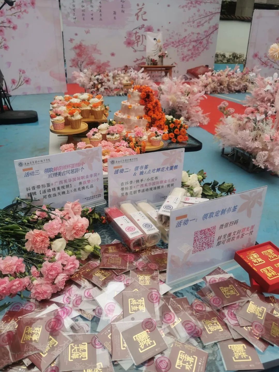 此次的活动惊喜,引来同学们簇拥围观,更有花神姐姐亲自分享鲜花蛋糕给大家,激起新一波高潮~