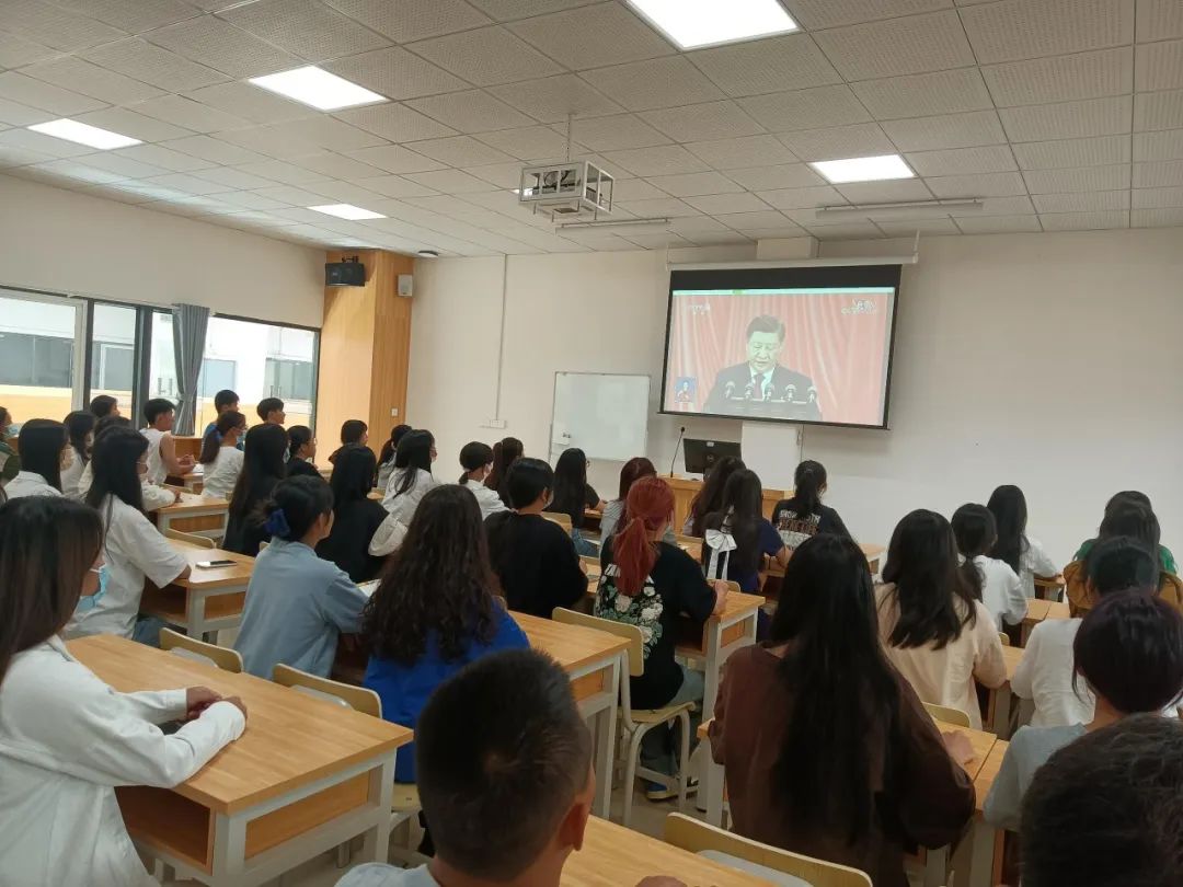 校团委于2022年10月16日上午10:00组织团员青年以线下线上等形式集中收听收看党的二十大开幕会直播。